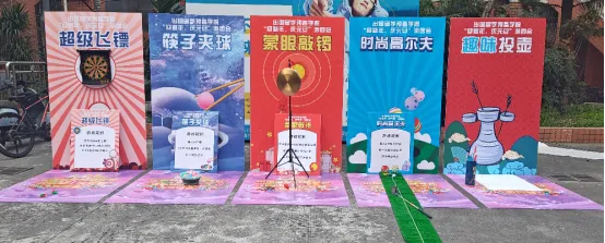 举办的“迎新年,庆元旦”游园会,吸引了无数师生驻足。游戏摊位上,新潮与传统碰撞,挑战与欢笑齐飞!趣味高尔夫、投壶、射箭、飞镖等各项游戏前都排起了欢乐的长队。同学们纷纷上前“浅尝”几把:或是专注挥杆,或是屏息投掷,或是蒙眼摸索(蒙眼敲锣),或是夹起圆球(趣味夹球)。看似简单的游戏,却总能带来意想不到的笑料。大家在一次次轻松地尝试中,收获了大大的快乐,欢声笑语此起彼伏。